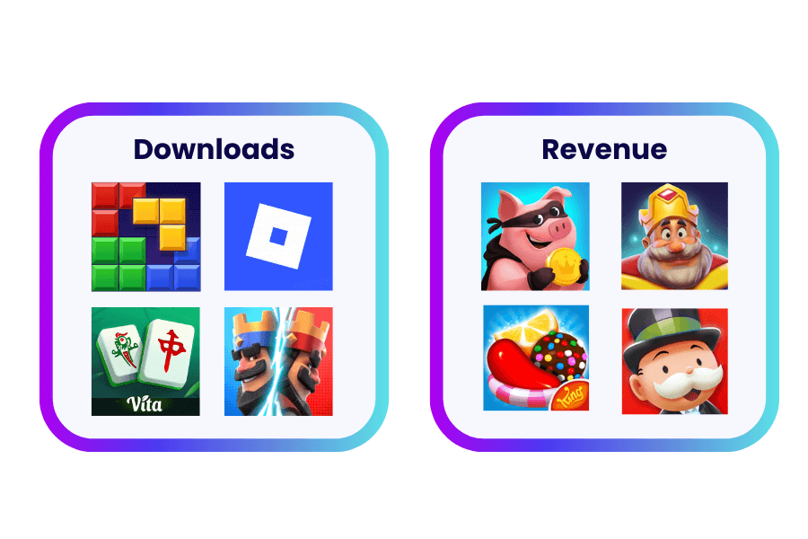 - Puzzle, simulation, and arcade games dominate Europe’s charts, reflecting a preference for casual play.