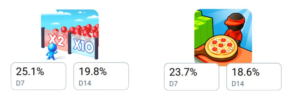 이와 같은 상위 게임의 성과는 지속적인 최적화를 통해 얻은 것이지만, 일반적으로 하이브리드 캐주얼 게임이 경쟁력과 수익성을 유지하려면 15~20%의 D7 잔존율 달성을 목표로 해야 합니다.