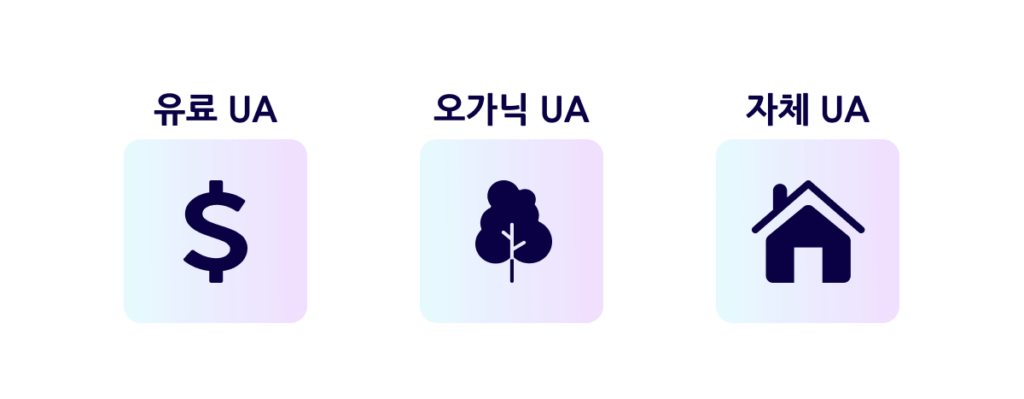 유료 UA. 다양한 채널과 광고 네트워크의 광고 캠페인에 투자하여 관련성 높은 잠재 고객에게 광고를 게재하고 앱 다운로드를 유도합니다. 인앱 광고, 소셜 미디어 광고, 인플루언서 광고 등이 유료 UA의 예시가 될 수 있습니다.