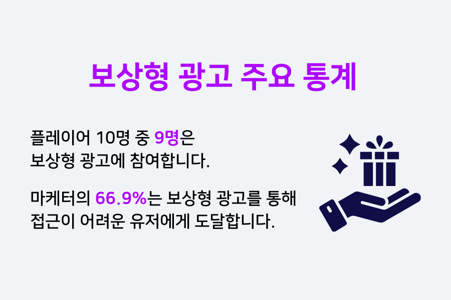실제로 Digiday에 따르면, 모바일 게임 플레이어의 85%가 게임 내 보상을 즐기고, 10명 중 9명은 보상받기 위해 광고와 적극적으로 상호작용을 한다고 밝혔는데요.